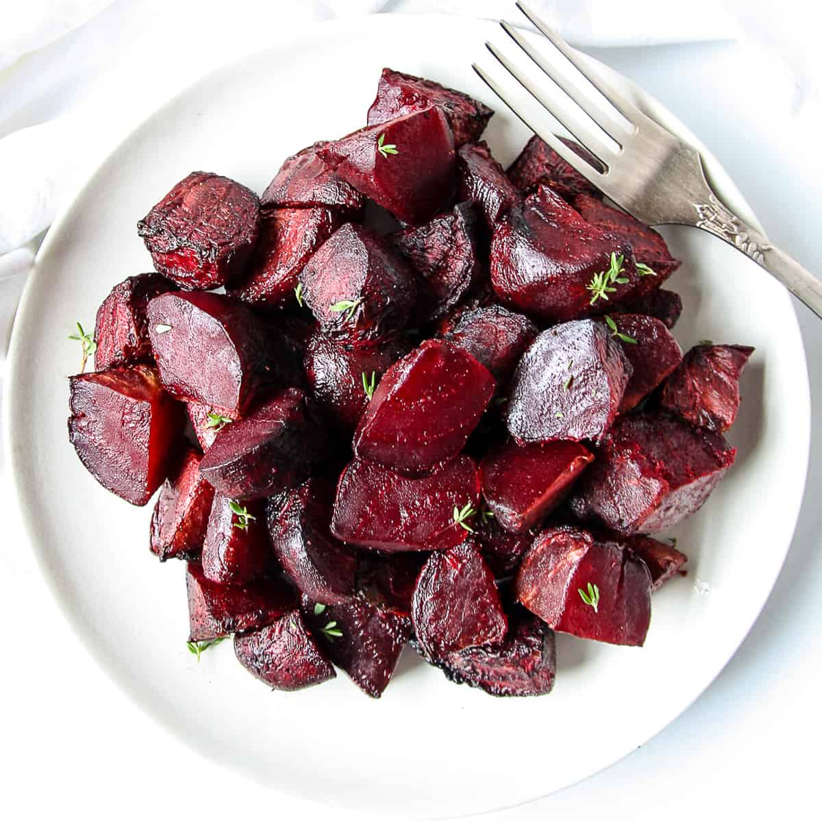 These tender roasted air fryer beets are easy to make for a healthy snack or side dish. Serve them on a salad, sandwich or just eat them plain.
