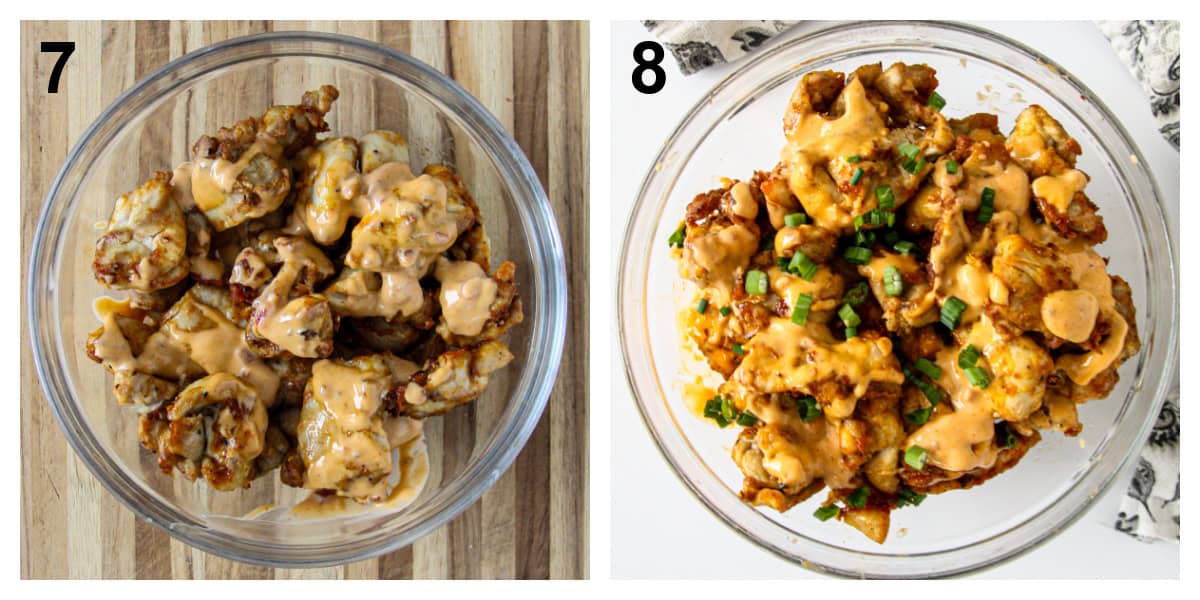 - Put the cooked chicken pieces in a large bowl and toss with half of the sauce, then add more to your liking. If you have leftover sauce, serve it on the side for dipping.