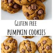 These gluten-free pumpkin cookies are soft, chewy, and all about those fall flavors. With real pumpkin flavor, plus all the warm spices, and loaded with chocolate chips, these soft pumpkin cookies will add a delicious autumn vibe to after school treats and coffee breaks.